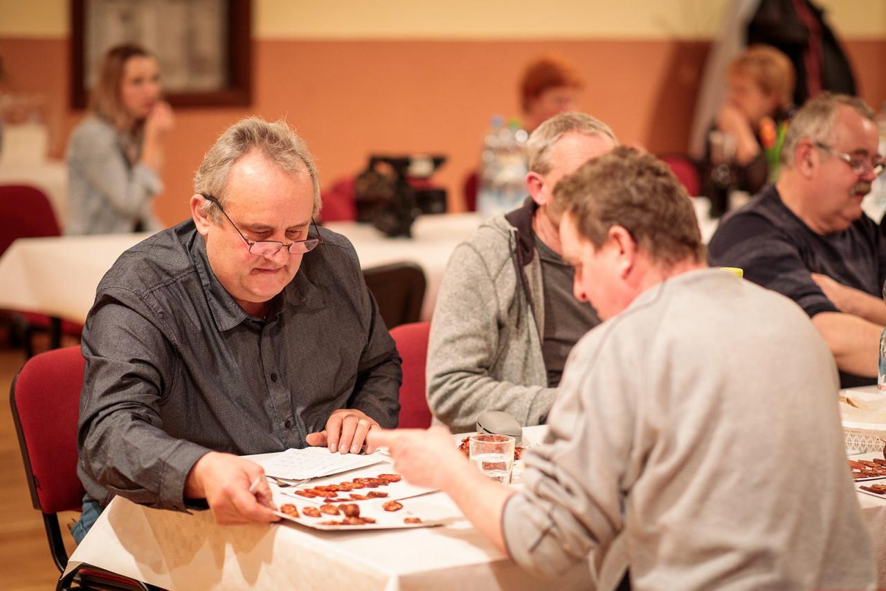 Samotná súťaž pozostáva z hodnotenia kulinárskych produktov – klobás rôzneho druhu, ktorú hodnotia samotní účastníci pričom jednotlivým vzorkám prideľujú príslušné body, a to podľa farby, vône, chuti a celkovému vzhľadu, pričom každý porotca môže udeliť max. 20 bodov. Súťaž je anonymná a výsledné poradie sa určí na základe celkového počtu získaných bodov. V tomto ročníku sa nám aj vďaka sponzorom podarilo oceniť prvých 6 účastníkov podľa poradia: 1. Nemetz Ferdinand (16,11 b.), 2. Španielová Alžbetka (14,71 b.), 3. Andok Pavol - vzorka I. (14,04 b.), 4. Súkeník Bohumil (13,89 b.), 5. Dobrovodský Ľubomír - vzorka II. (13,82 b.), 6. Matušíková Ľubka (13,57 b.).